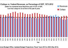 Federal Outlays vs. Federal Revenues, as a Percentage of GDP, 1973-2012