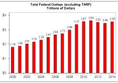 Contrary to the myth of federal profligacy under President Obama, total expenditures for FY 2013 and 2014 have gone down…