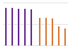 In purple are the states with the highest passing rates of the Bar exam while the orange bars show the…