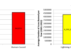 On average, there were more human-caused wildfires (64,655) per year than lightning-caused wildfires (10,941) in the U.S. from 2001-2012. However,…
