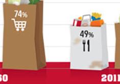 In 1960, 26% of money spent on food in the U.S. was spent on food eaten away from home, while…