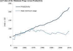 Compared to labor productivity growth, a common benchmark for comparing the minimum wage, the current federal wage minimum has lagged…