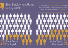 Since 1993, employment for teens ages 16-19 has fallen nearly 20 percent overall, with the gap between black and white…