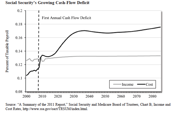Social Security is failing, and it is in serious need of reform. Since around 2010, the cost of the program has exceeded its annual income. In its current form, the program operates an a significant and unsustainable loss, and based on current projections, the cash-flow deficit is only going to get worse in the future.