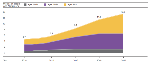 As the number of older Americans grows rapidly (due to advances in medicine and technology, as well as the baby boom phenomenon) so too will the numbers of new and existing cases of Alzheimer’s disease. By 2030, the segment of the population 65 and older is expected to grow from 13% to 20%, reaching 72 million. The increasing number of individuals with Alzheimer’s will have a marked impact on states’ health care systems, as well as on families and caregivers.