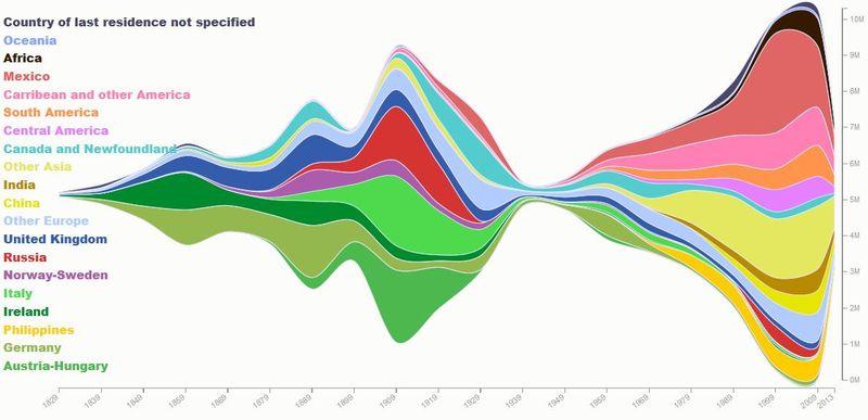 A lovely chart by Natalia Bronshtein showing immigration in the US. Check out her interactive chart insightfulinteraction.com/imm… - Georgeous data work!