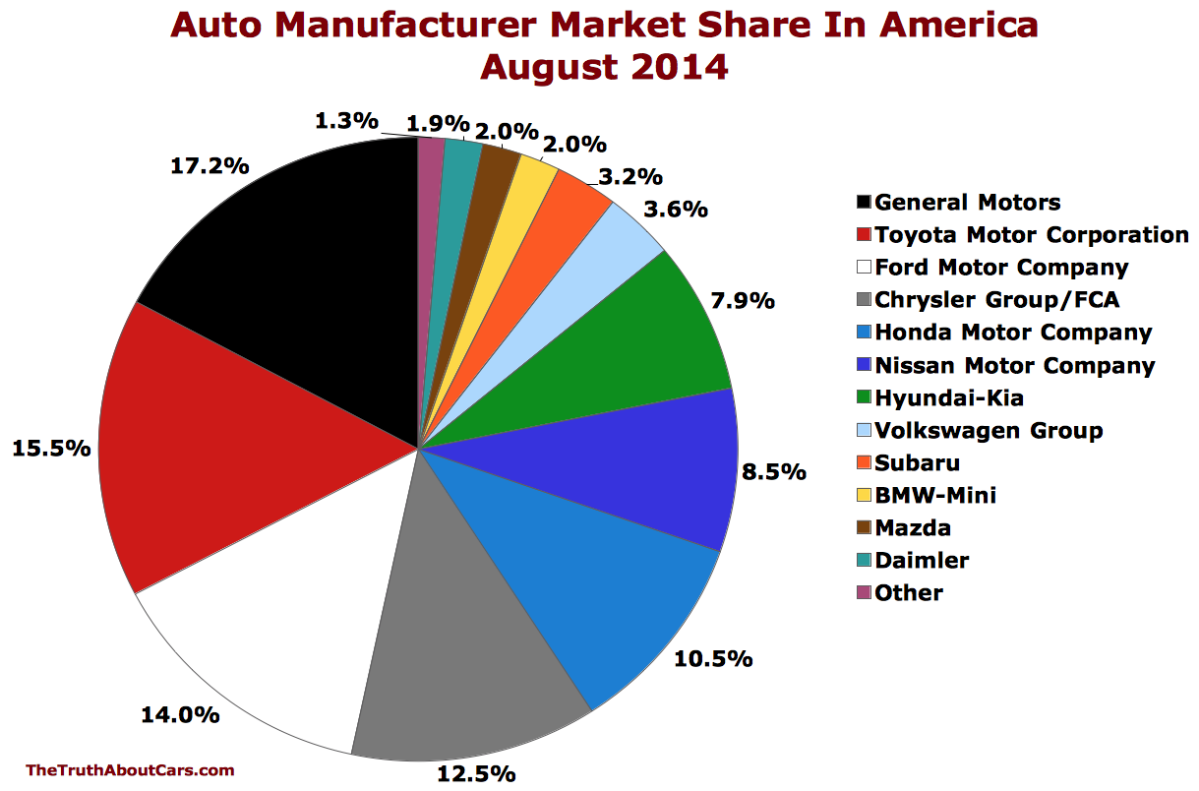 Chart displays the market share of all the auto manufactures within the United States. Something like this is very important to the car wax industry.