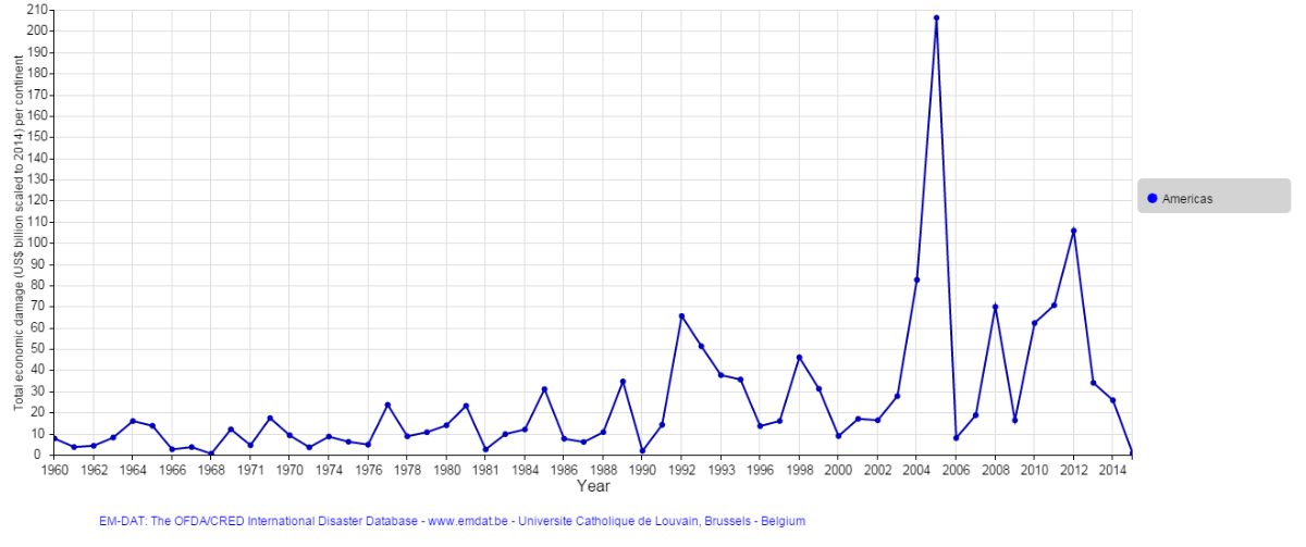 The damage caused by natural disasters has been increasing. This is why the actuarial profession has increase greatly the last decade: in a constant uncertain world, we need actuaries to evaluate risk so the country will not be affected as much by natural disasters.