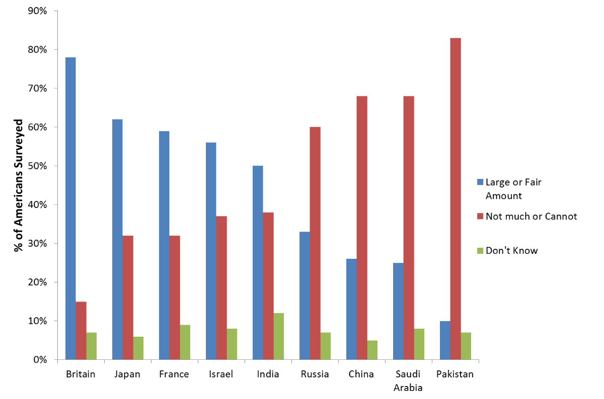 When asked how much the US could trust foreign nations, Americans revealed they did not believe the US could trust two of the five nations with permanent seats on the UN security council. While 62% of Americans seem to have forgiven the attacks on Pearl Harbor, it would appear that 9/11 is preventing them from trusting the Middle East.