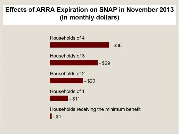 This November, SNAP recipients will see their benefits decline when a provision of the 2009 Recovery Act expires. The average benefit per person per meal for a SNAP recipient will decrease from a paltry $1.50 to just $1.40. This cut will affect all 47 million SNAP recipients, including 22 million children and 9 million elderly and disabled people.