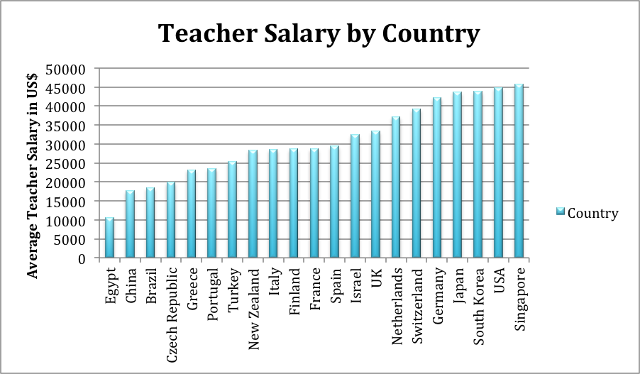 Average salaries for teachers varies greatly around the world. All salaries are shown in US dollars. See also: savvyroo.com/chart-3427438858…
