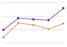 Median age at time of first marriage is on the rise. Since 1980, it has risen 3.5 years for women and 4.1 years for men. American women still marry younger than men.