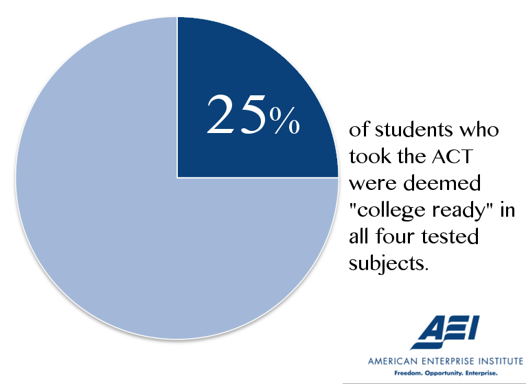 If the ACT is a reliable barometer of “college and career readiness,” then the US education system is failing to prepare students for life after school. Only 5 percent of African-American and 13 percent of Hispanic students were college-ready in all four subjects, and only 42 percent of Asian-American students and 32 percent of white students were as well.