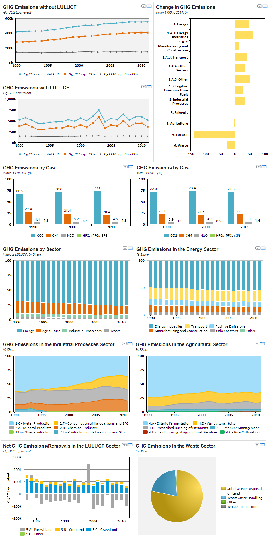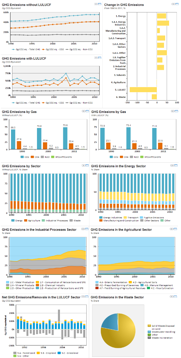 In order to prevent dangerous anthropogenic interference with the global climate system, lying in the growth of concentration of GHG in the atmosphere, first of all it is necessary to have reliable estimates of emissions and removals of GHGs. Charts and graphs below demonstrate the countries' contribution to the global GHG emissions and provide background to analyze emissions by sources.