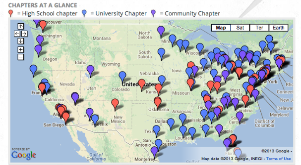 This map shows the U.S. chapters of the Harry Potter Alliance, a movement of Harry Potter fans turning their deep love of the stories into real-world action in order to "fight injustice in our world." The group has 190 chapters in 35 U.S. states and eight countries. Click the article to see 8 issues these courageous fans have taken on.