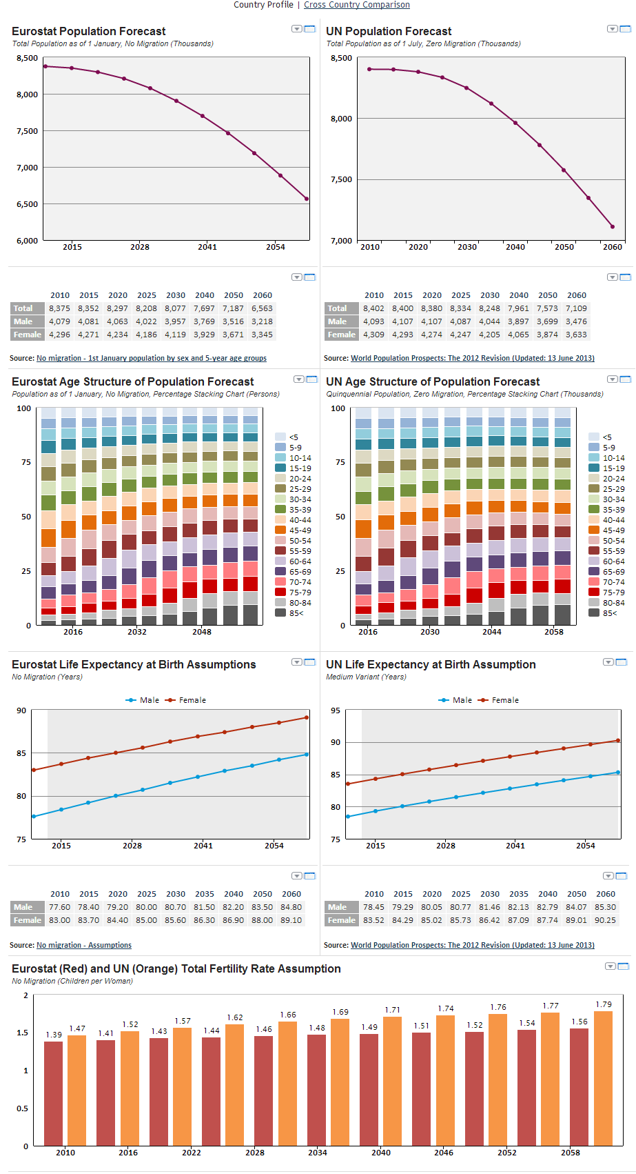 Charts and data below are focused on the zero-migration variant of forecast, i.e. estimates of natural population change only due to births and deaths. That is why predictions are based on the assumptions of levels of fertility rate and life expectancy at birth which will prevail across the forecast period in the given country.