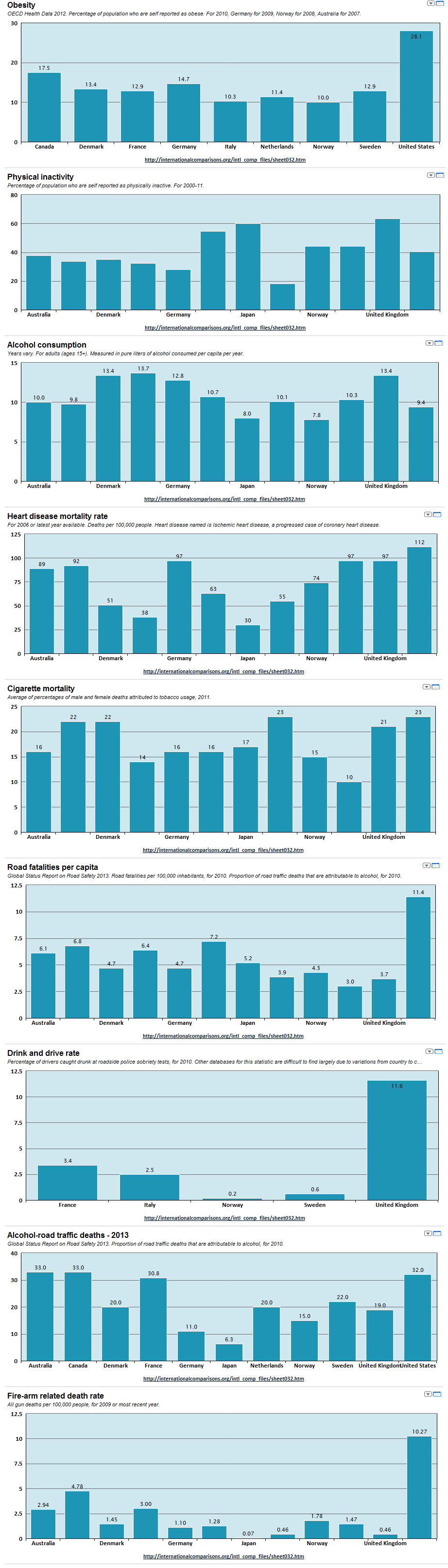 A sedentary lifestyle is revealed to have a greater impact where fewer active transportation alternatives are offered as exhibited in the case of the United States.