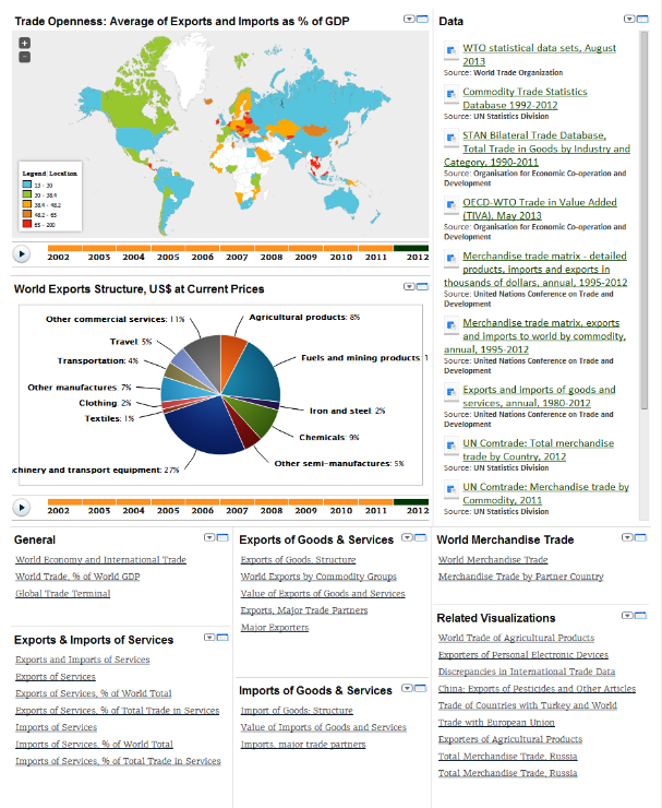 Nowadays, wide variety of goods are involved in merchandise trade, but traditional ones, such as fuels, mining products, machinery and transport still remain most tradable. International trade of services, including transport, tourism and financial services, is also gaining momentum headed by the US as the world leader in exports and imports of services.