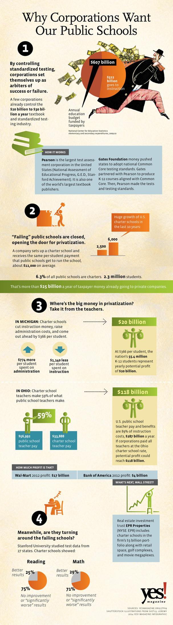 This infographic appears in the Winter 2014 issue of YES! Magazine, Education Uprising: The New Rebels Taking Back Our Public Schools. To see more from this issue go to bit.ly/1cG8qUs.