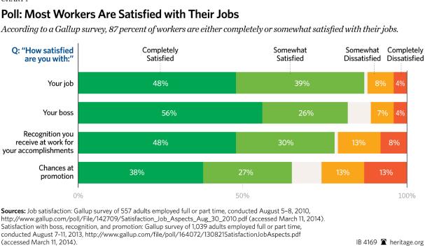 According to a Gallup survey, 87 percent of workers are either completely or somewhat satisfied with their jobs.