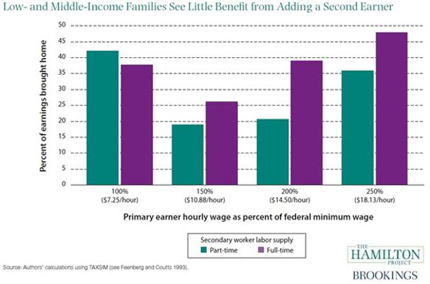 For families headed by a married couple, spousal income is pooled, and the first dollar of earnings by a spouse—or “secondary” earner —is taxed at the marginal tax rate of the last dollar earned by the primary worker.