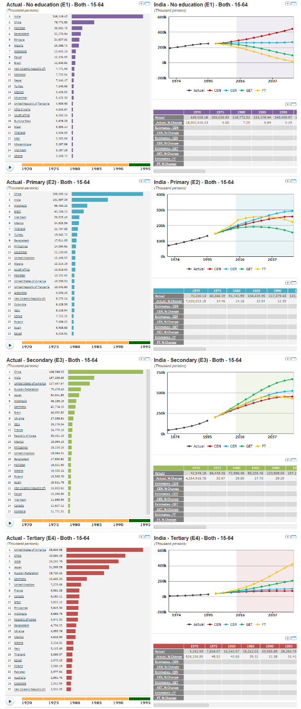 Present dashboard is aimed at providing comprehensive visual analysis of the dataset developed on the basis of the research "Projection of populations by level of educational attainment, age, and sex for 120 countries for 2005-2050" (Samir KC et al., 2010) (www.demographic-research.org/…).