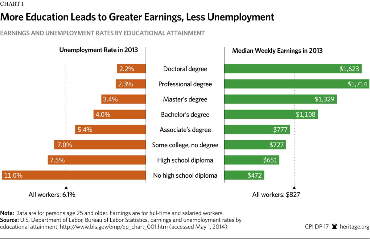 Those with a college degree earn about twice as much as those with only a high school diploma.