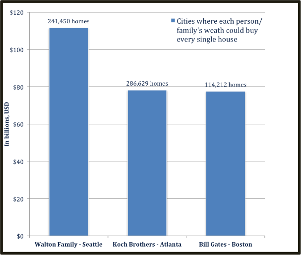 While the median household net worth in the United States stalls at a 43-year low at just under $70,000 including home equity, the ultra-wealthy are doing just fine. So fine, in fact, that they could personally buy up entire cities.