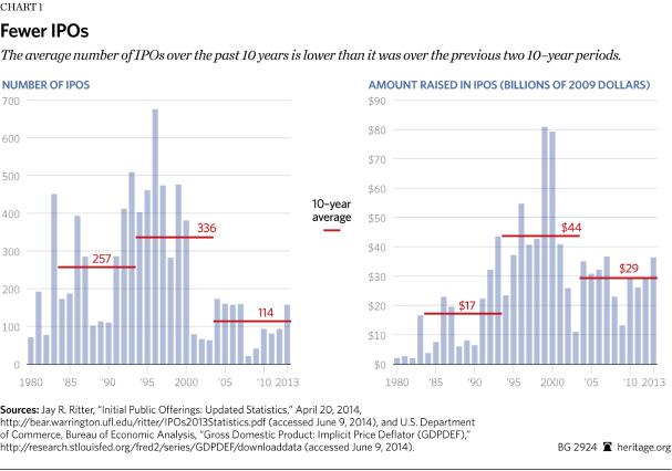 The Securities and Exchange Commission estimates the regulatory compliance costs for going public is $2.5 million for an initial IPO and $1.5 million a year afterwards. That deadweight cost is likely a major factor in the decline of IPOs over the past 10 years.