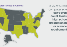 Only half of states (the yellow ones on the map) allow computer science courses to count towards high school graduation.