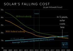 This chart gives the big picture on solar costs with the most conservative example: solar energy in the Midwest –…